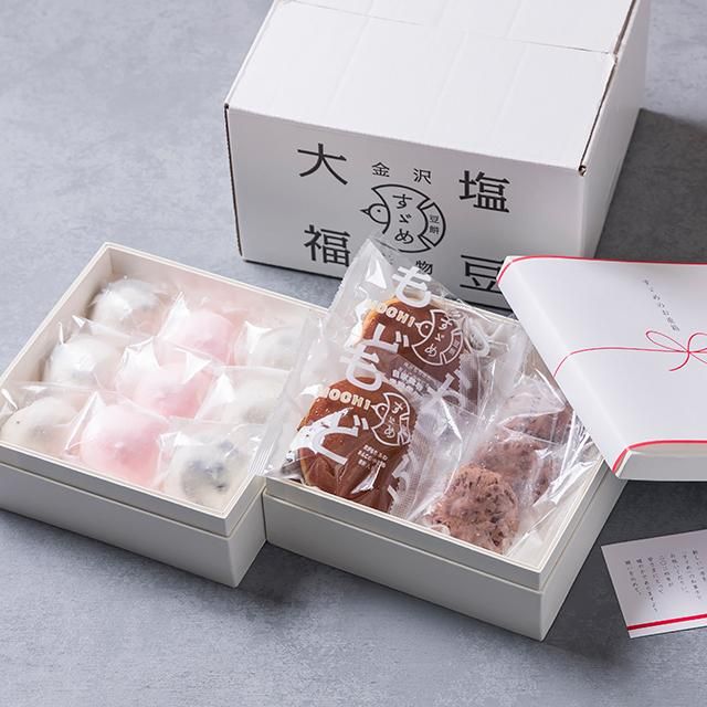 【ご注文受付期間】年内到着希望の場合は、2025年12月20日までにご注文ください。 【お届け日】年内のお届けは、2025年12月27日到着までとさせていただきます。 【お届け不可日】2025年12月28日〜2026年1月6日 お届け日をご指定される場合は、上記期間を避けてご指定ください。 新年のご挨拶や年始のお集まりにおすすめしたい、 二段重ねのすゞめの和菓子セット! 塩豆大福、おはぎ、もちどら すゞめ和菓子の定番ラインナップに おめでたい赤大福を加えました。 全て地元、白山市で育てたもち米、米粉を使用しています。 友人や親族の集まりに お客様のおもてなしに みんなですゞめの和菓子を囲みませんか。 お子さまからおじいちゃん、おばあちゃんまで、一緒にお楽しみいただけます。 冷凍保存でのお届けなので、いつでもお好きなタイミングで。 人数にあわせて好きな分を解凍して、お召し上がりいただけます。 ・塩豆大福(6個) 自家栽培のもち米をつき上げたもち生地で、ふっくらしおしおの黒豆と、甘さ控えめの粒あんを包み込んだすゞめの看板大福。 ・赤大福(3個) 白あんの入った、もちもちの大福。赤色は昔から厄除けの色としても知られており、おめでたい席にふさわしい品です。 ・おはぎあんこ(3個) やさしい甘さ、昔ながらの味わい。直売店で根強い人気商品です。 ・すゞめのもちどら(2個) 小麦粉と米粉を使用した生地に、粒あんと求肥をはさんだ「ふわもち」などら焼きです。 数量限定での販売のため、無くなり次第終了とさせていただきます。ご了承ください。
